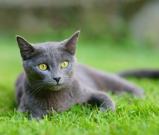 Facilement reconnaissable avec son pelage gris bleu et ses yeux vert émeraude, le Bleu russe est un chat particulièrement loyal, qui apprécie avant tout la compagnie de son maître.