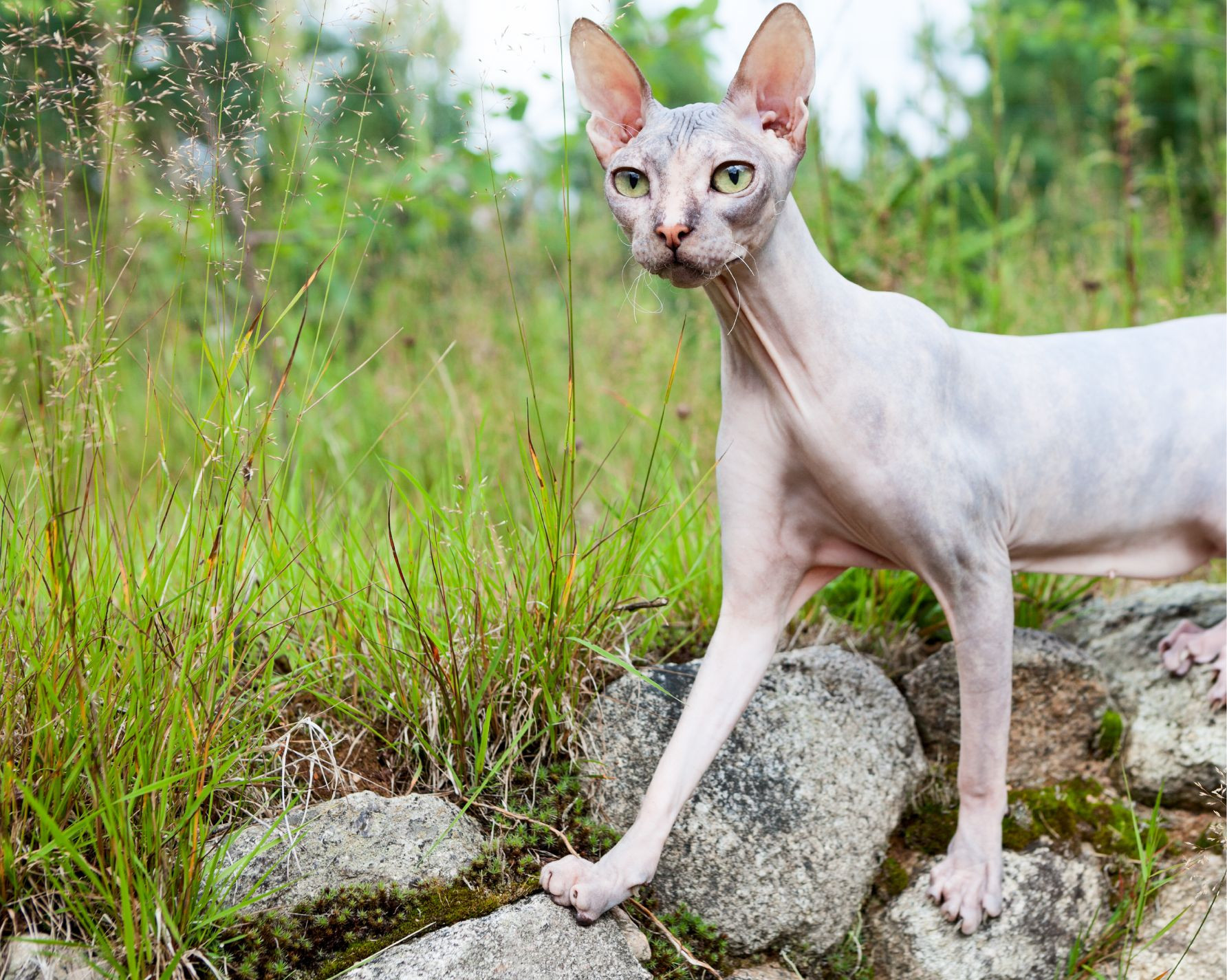 Le Peterbald est un chat au poil très court, presque nu. Ses grandes oreilles et ses yeux en amande sauront vous attendrir dès le premier regard.