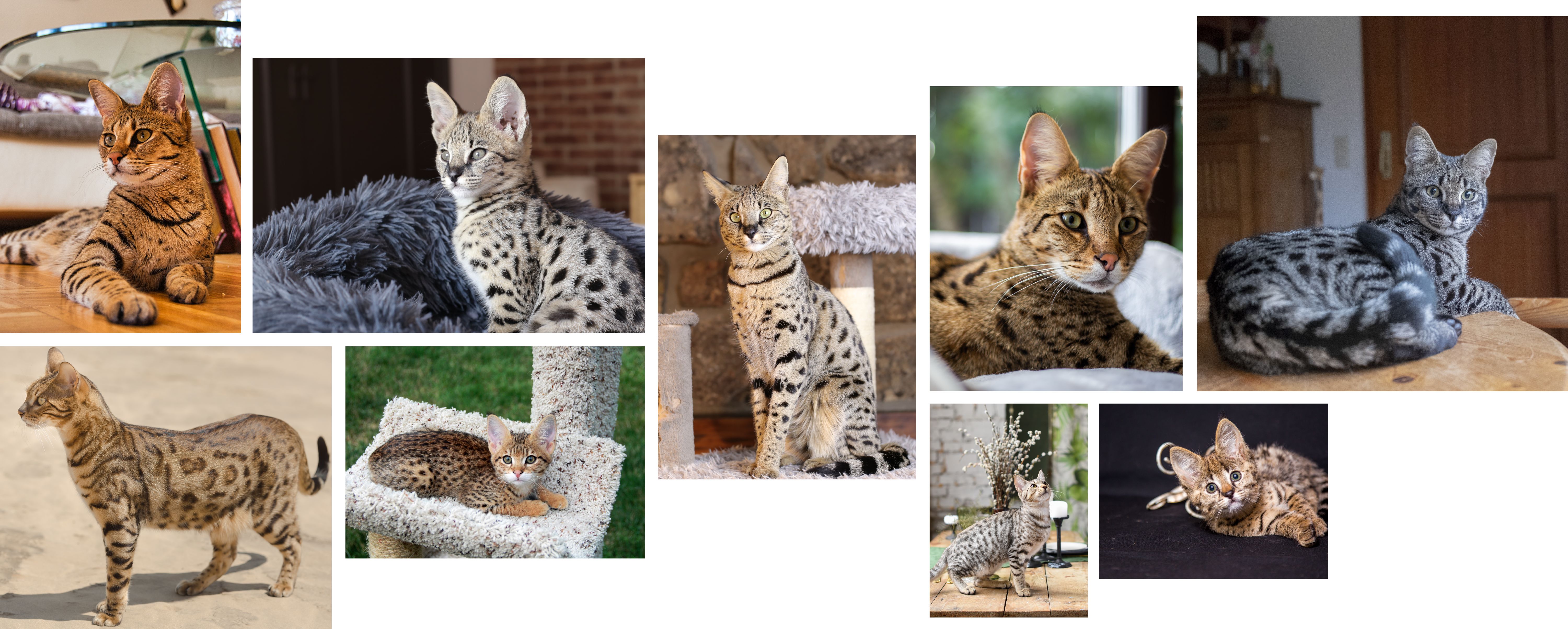 C’est aux États-Unis que la race Savannah voit le jour. Elle est issue d’un croisement entre le Serval, le célèbre félin d’Afrique, et des chats tachetés, qui lui procurent ce pelage unique. En 1986, le premier Savannah est élevé en Amérique du Nord, et donnera lieu à une deuxième génération. Dix ans plus tard, en 1996, Patrick Kelley et Joyce Sroufe rédigent le standard de la race et la race sera officiellement reconnue en 2001 grâce aux efforts de Lorre Smith et Gary Fulgham qui ont joué un rôle actif dans la popularité de la race.