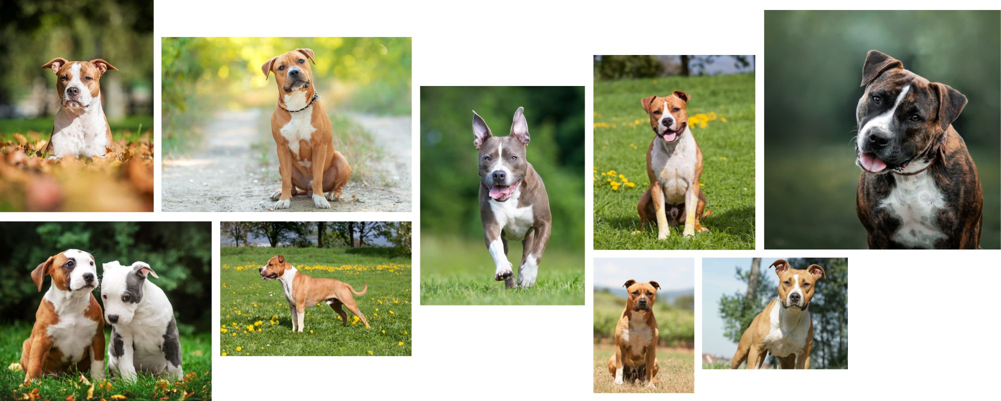 Originaire du Canada, l’American Staffordshire Terrier est issu du croisement entre deux races destinées au combat et aujourd’hui disparues : le Bull-and-Terrier et le Blue Paul Terrier. Au début du XIXe siècle, l’AmStaff était lui aussi utilisé comme chien de combat, principalement en Angleterre. Ce type d’usage étant interdit dès 1835, il reste clandestin jusqu’au début du XXe siècle.